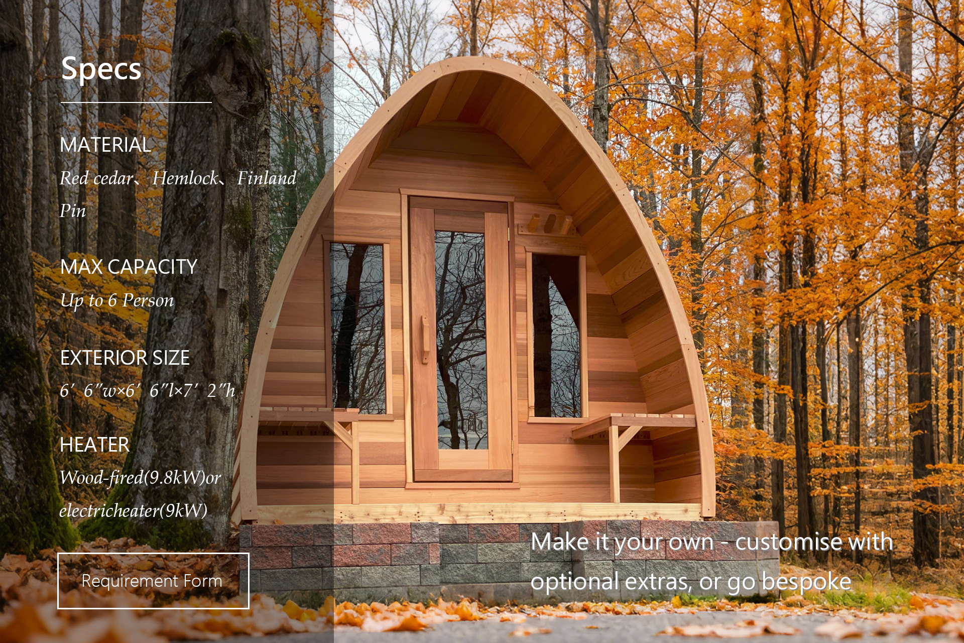 Outdoor Pod Sauna—Up to 6 person—Support OEM/ODM