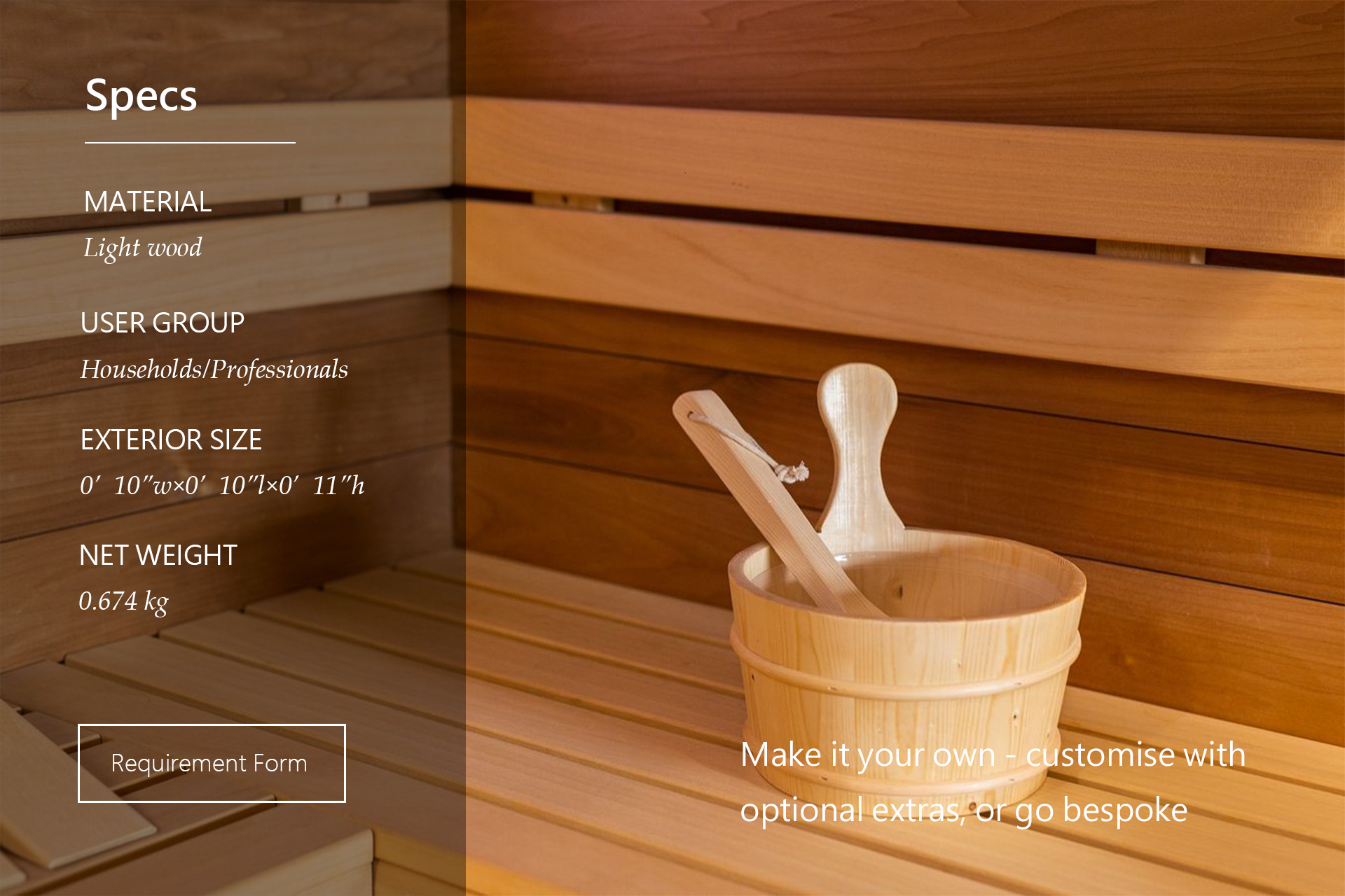 The sauna bucket is made of premium cedar wood, crafted to maintain the original smell and texture of the wood.