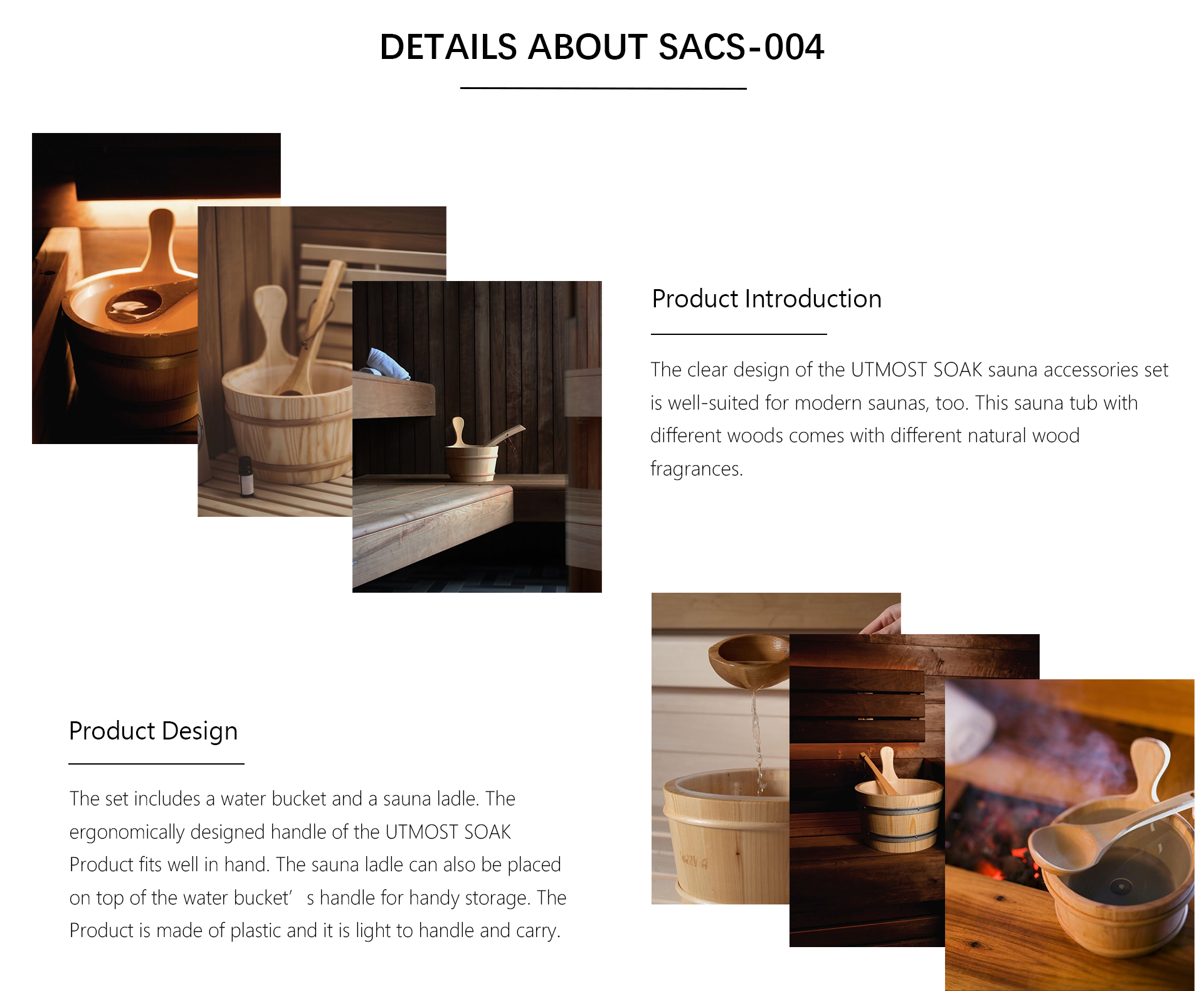 Sauna bucket ladle set can withstand the high temperature of a sauna room without heating up and is easy to use.